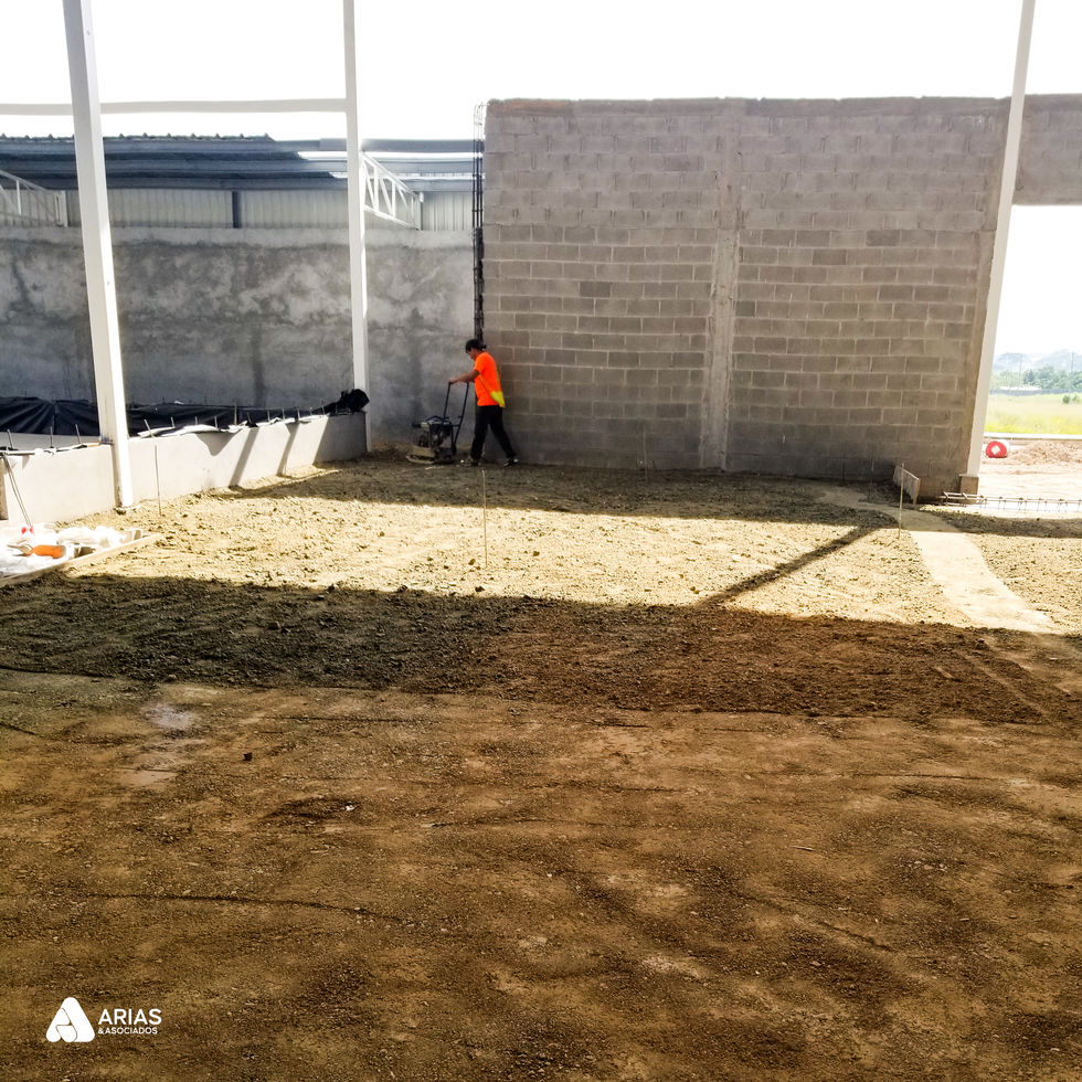 Construcción de un piso industrial de más de 4 500 m², que incluye la nivelación y compactación de la subrasante, colocación de geotextil y malla electrosoldada sobre base estabilizada, y vaciado de hormigón de alta resistencia nivelado con láser bajo iluminación nocturna; el cierre se realiza con juntas de dilatación, pulido mecánico y curado controlado para garantizar planicidad, durabilidad y capacidad de carga para tráfico pesado.